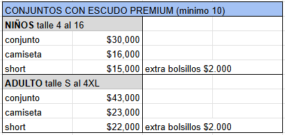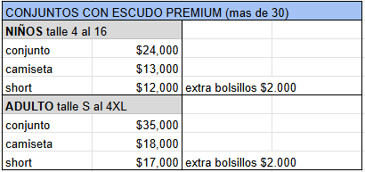 - En todas las opciones estan incluidos los numeros, escudos, publicidades, y todo lo que quieras agregar (ver aclaracion tema diseño)